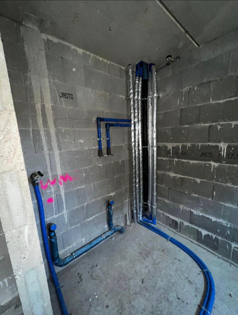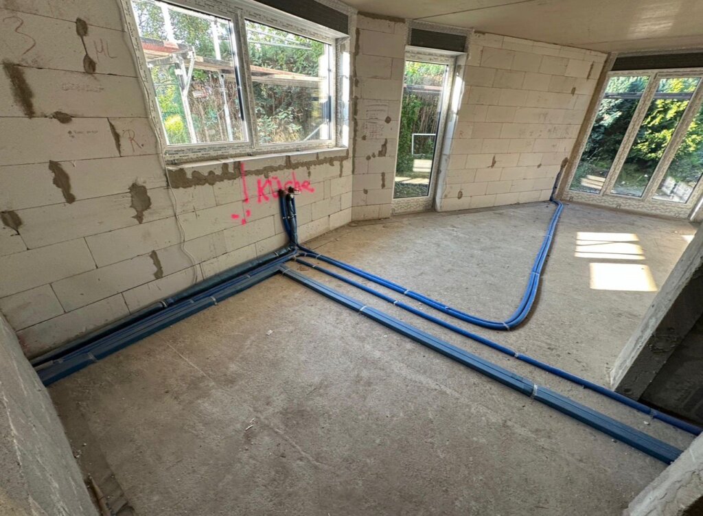 Im Rahmen eines Neubauprojekts in Odenthal hat Atris die komplette haustechnische Ausrüstung von vier Reihenhäusern übernommen — Heizung, Sanitär und Lüftung als Gesamtpaket. Für den Bauherren bedeutete das: ein Ansprechpartner für alle drei Gewerke, abgestimmte Ausführung und ein reibungsloser Bauablauf ohne Koordinationsaufwand zwischen verschiedenen Betrieben.